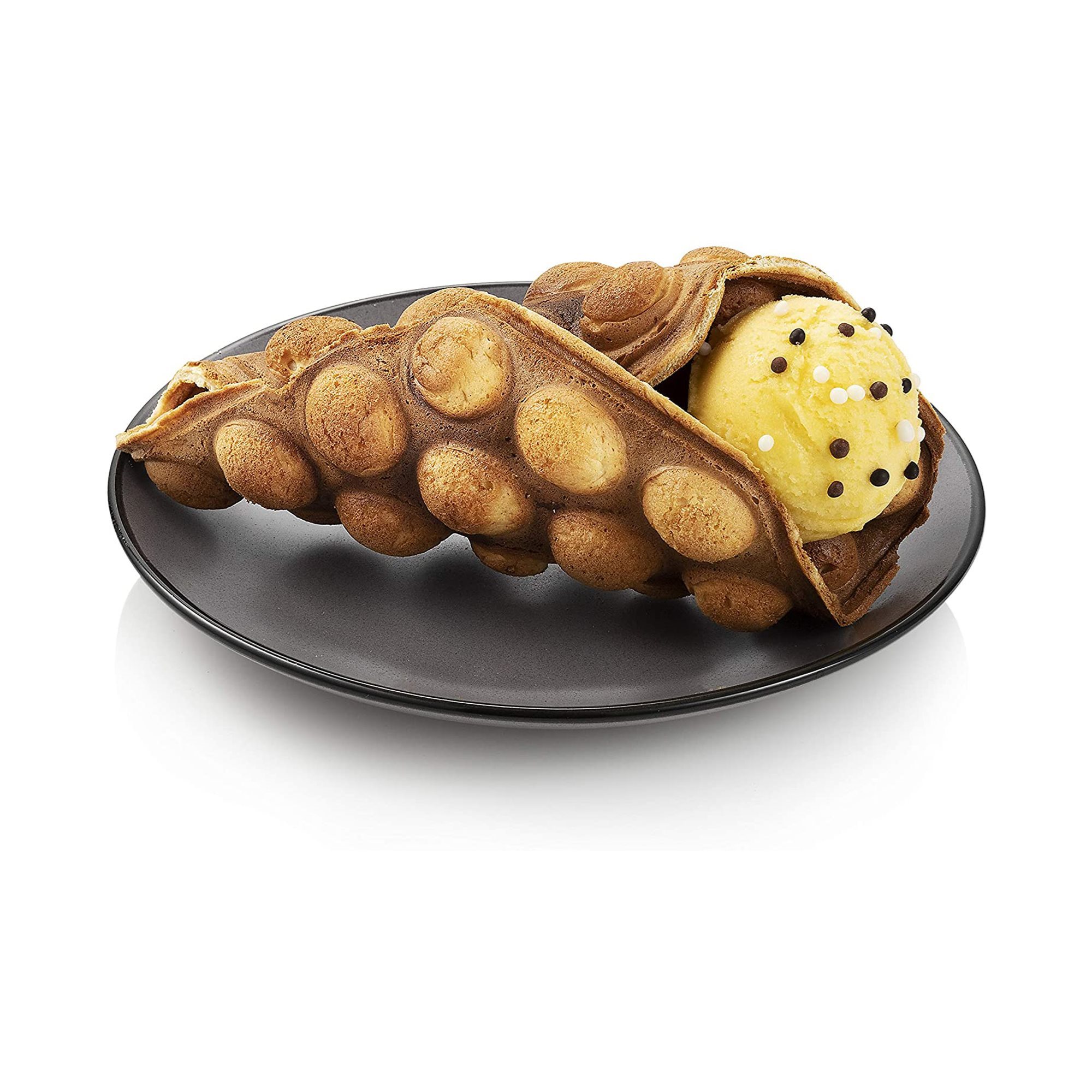 Навийте топлите вафли под формата на фунийка за сладолед и можете лесно да ги напълните със сладолед заедно с други топинги. Вафлите са вкусни както със сладък, така и със солен пълнеж. Идеален уред за детско парти или ако искате да изненадате приятелите си с креативна закуска.