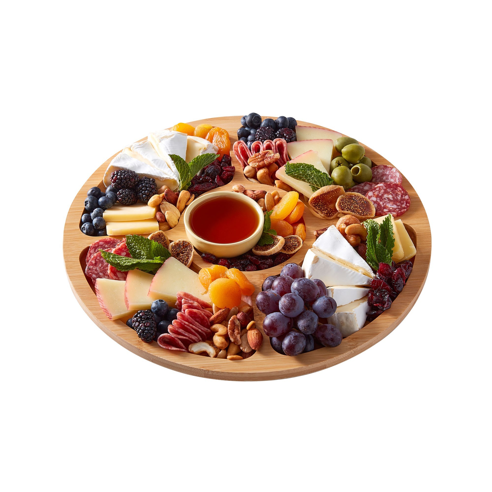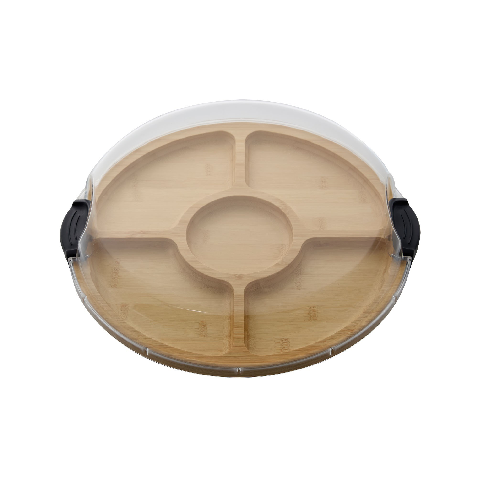 Въртяща се чиния с отделения, Farberware™ Build-a-Board , изработена от бамбук, диаметър 35,5 см, снабдена с пластмасов капак.